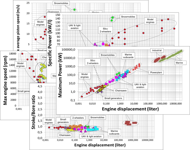 Did you know that the smallest engines in the world are 2-stroke engines for model aircraft? The smallest engines can have a displacement of less than one cubic centimeter and produce about 20 watts at about 38 000 rpm.
